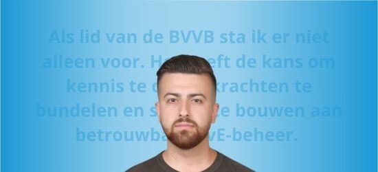 Als lid van de BVVB sta ik er niet alleen voor. Het geeft de kans om kennis te delen, krachten te bundelen en samen te bouwen aan betrouwbaar VvE-beheer. Het keurmerk straalt uit dat ik professioneel en te vertrouwen ben en dat vind ik heel belangrijk. Sterker nog: ik vind dat het keurmerk verplicht zou moeten zijn voor alle beheerders.” Aldus Yakup.